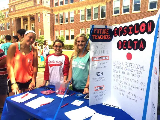 Epsilon Delta is a professional teaching fraternity for undergraduate students who are preparing for careers in education. The purpose of the organization is to promote professional growth and understanding in the field of education. Epsilon Delta provides an opportunity for students to exchange ideas and concerns regarding educational issues. Membership is available for any undergraduate who has a strong interest in the education profession.